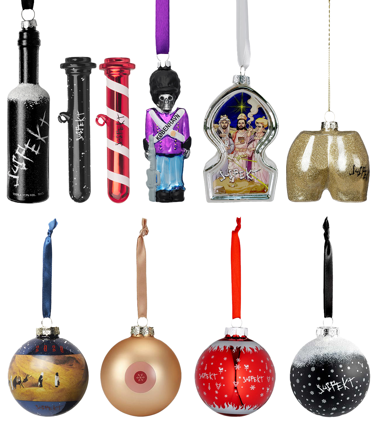 Komplet sæt med alle 9 Suspekt julekuglerne 2017 til 2025.